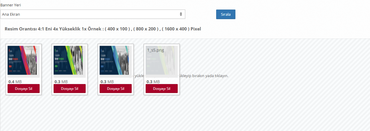 Banner Yeri; B2B portalınızın ana sayfasında yer alacak görselleri belirlediğiniz alandır. Eklediğiniz görseller aşağıdaki gibi görüntülenecektir.