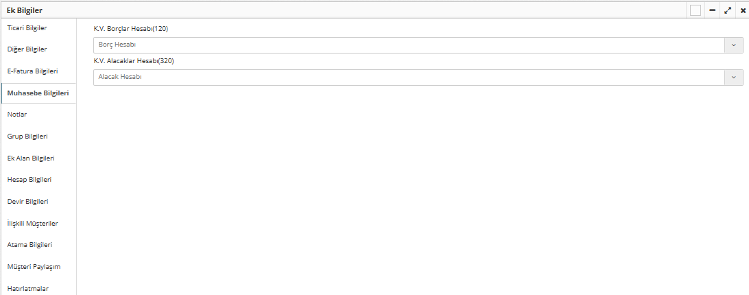 Firmanızın borç ve alacaklarının ilgili hesaplara bağlanabilmesi için bu alanlar kullanılmaktadır.